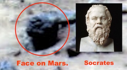 Pero eso no fue todo, ya que el cazador de ovnis encontró otra roca que refleja el rostro del antiguo filósofo Sócrates. “El gran filósofo y maestro griego estuvo en Marte, todos los detalles coinciden perfectamente. Eso puede explicar su forma avanzada y organizada de pensar y como trató de influir al mundo con eso”, señaló.