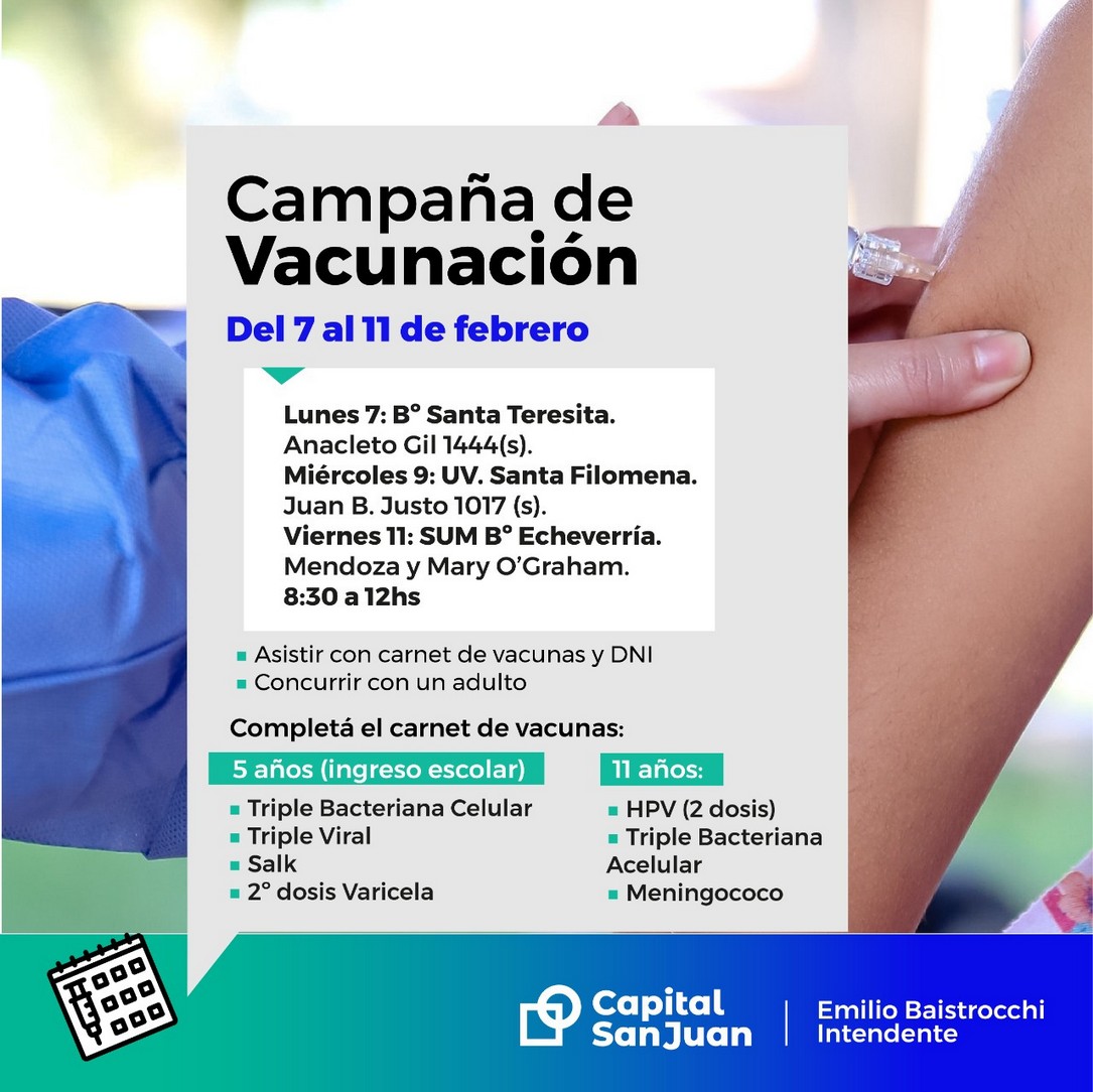 La Municipalidad de Capital trabaja para que los chicos que ingresan a la escuela primaria con edades entre los 5 y 11 años, lo hagan con el esquema de vacunación completo.