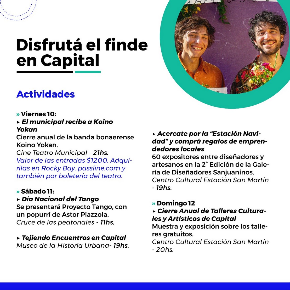 La Municipalidad de Capital propone una agenda cultural de eventos para que puedas disfrutar en familia o con amigos durante este fin de semana.